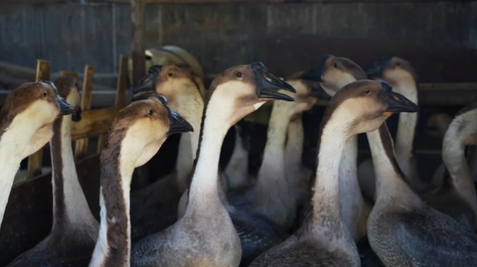 时令的节律,是芒棒腊鹅制作的隐形标尺。时至秋末冬初,天朗气清、空气干爽微凉,正是腌制腊鹅的黄金时节。此时,农户会将散养的成年青鹅转为精心栈养催肥,让鹅身积蓄充足油脂,为后续风味凝练做好万全准备。