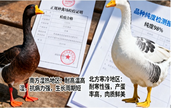 常见误区:盲目引进狮头鹅、三花鹅等热门品种,忽略本地气候、饲料资源和市场需求。比如南方山区养殖户引进北方耐寒的大白鹅,因高温高湿环境导致成活率不足 60%;北方平原养殖户跟风养殖需要大量青绿饲料的马岗鹅,因饲料成本过高压缩利润。