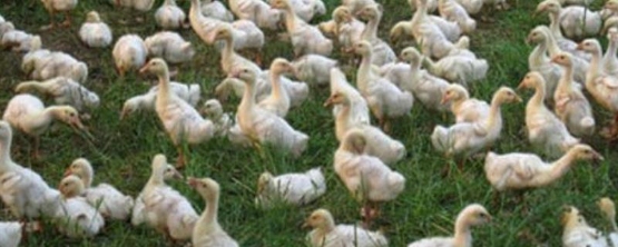 育肥方式:45 日龄后采用围栏育肥法,鹅床离地面 40-50cm 便于清粪,每平方米养 4-6 只;或采用强制填喂法,将饲料搓成 1cm 粗条塞入食道,每日 3-4 次。